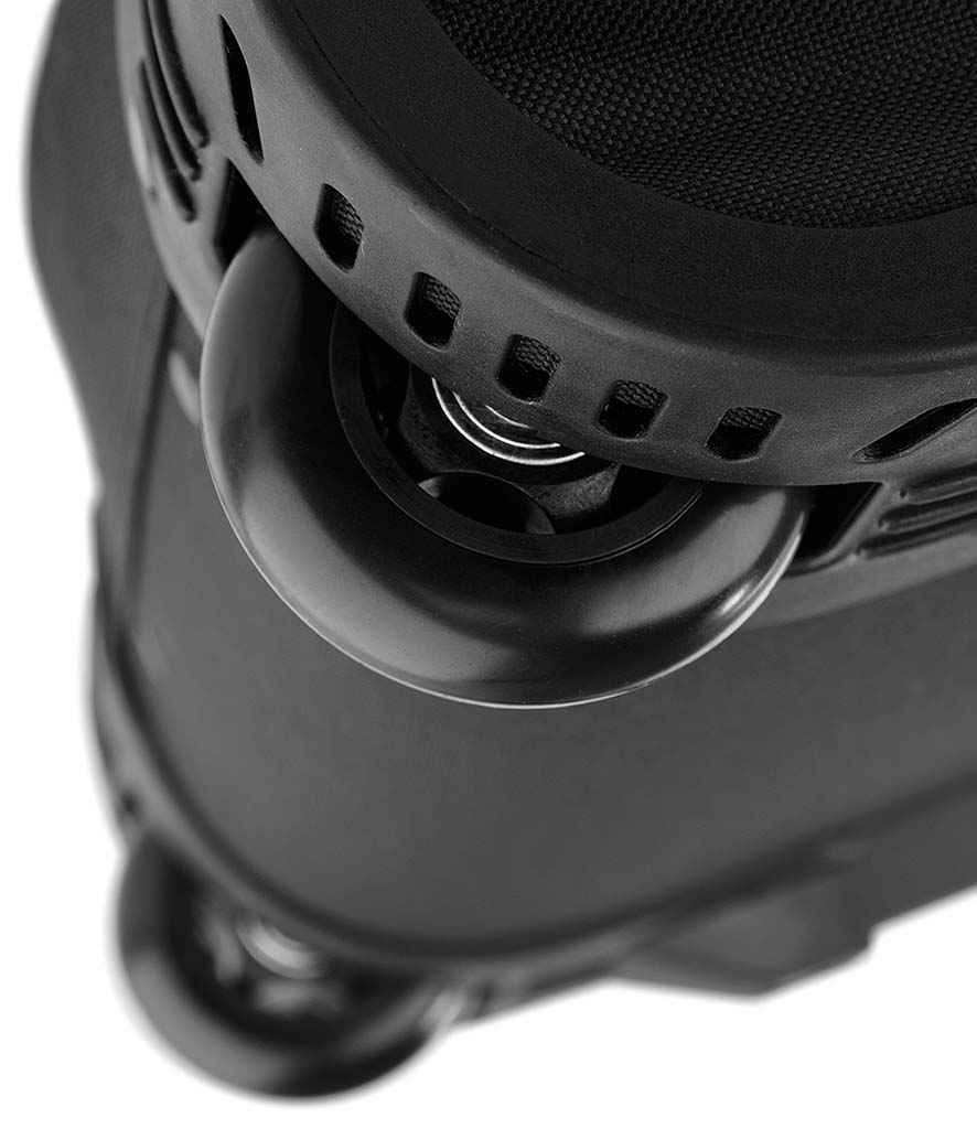 Padded hand grip. Detachable adjustable shoulder strap with pad. Haul handle. Retractable locking tow handle. Lockable main...