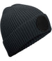 Ribbed knit. Single layer knit. Cuffed design. Engineered crown. Cotton twill patch for decoration. Decoration area 5.5cm...