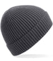 Ribbed knit. Single layer knit. Cuffed design. Engineered crown. Tear out label.