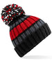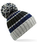 Polyester shearling lining. Heavyweight ribbed knit. Bold three colour stripe design. Oversized luxury pom pom. Cuffed design....