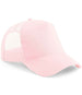 Polyester mesh rear panels. 5 panel. Pre curved peak. Retro style snapback size adjuster.