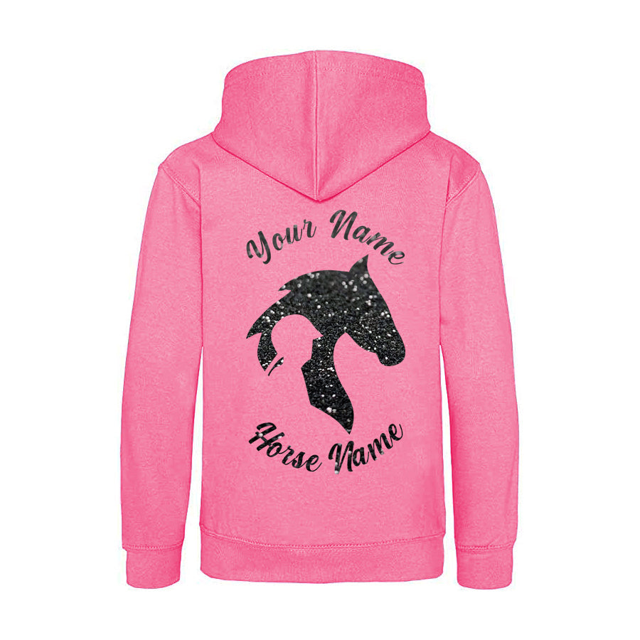 Childrens Personalised Back Print Horse Riding Hoodie Glitter Equestrian Hoody