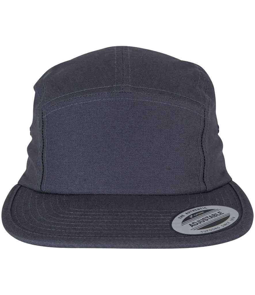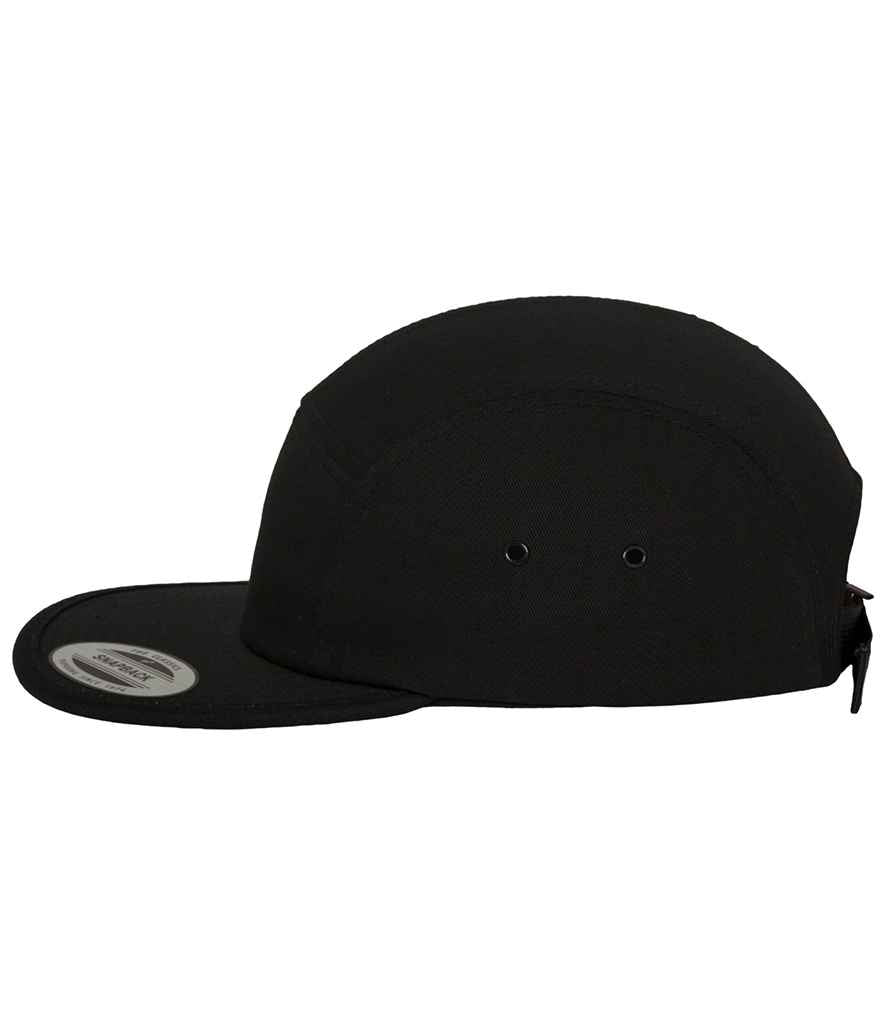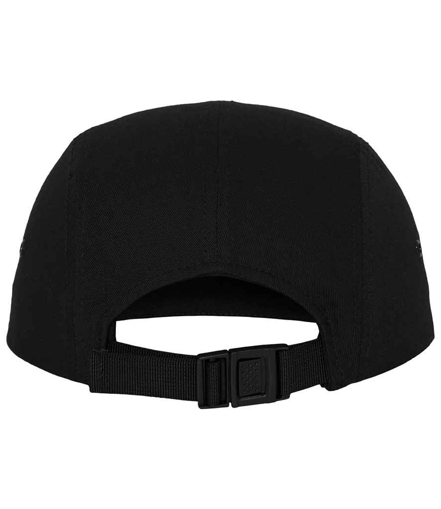 5 panel. Low profile. Metal ventilation eyelets. Structured front panels. Flat peak. Adjustable black nylon strap with...