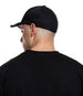 6 panel. Mid profile. Stitched ventilation eyelets. Structured front panels. Pre curved peak. Silver underpeak black black...