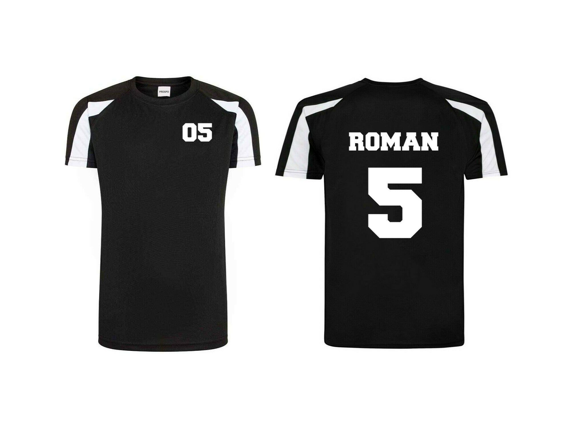 Kids Personalised Contrast Sport T Shirt Team Kit NAME and NUMBER Football PE Gym