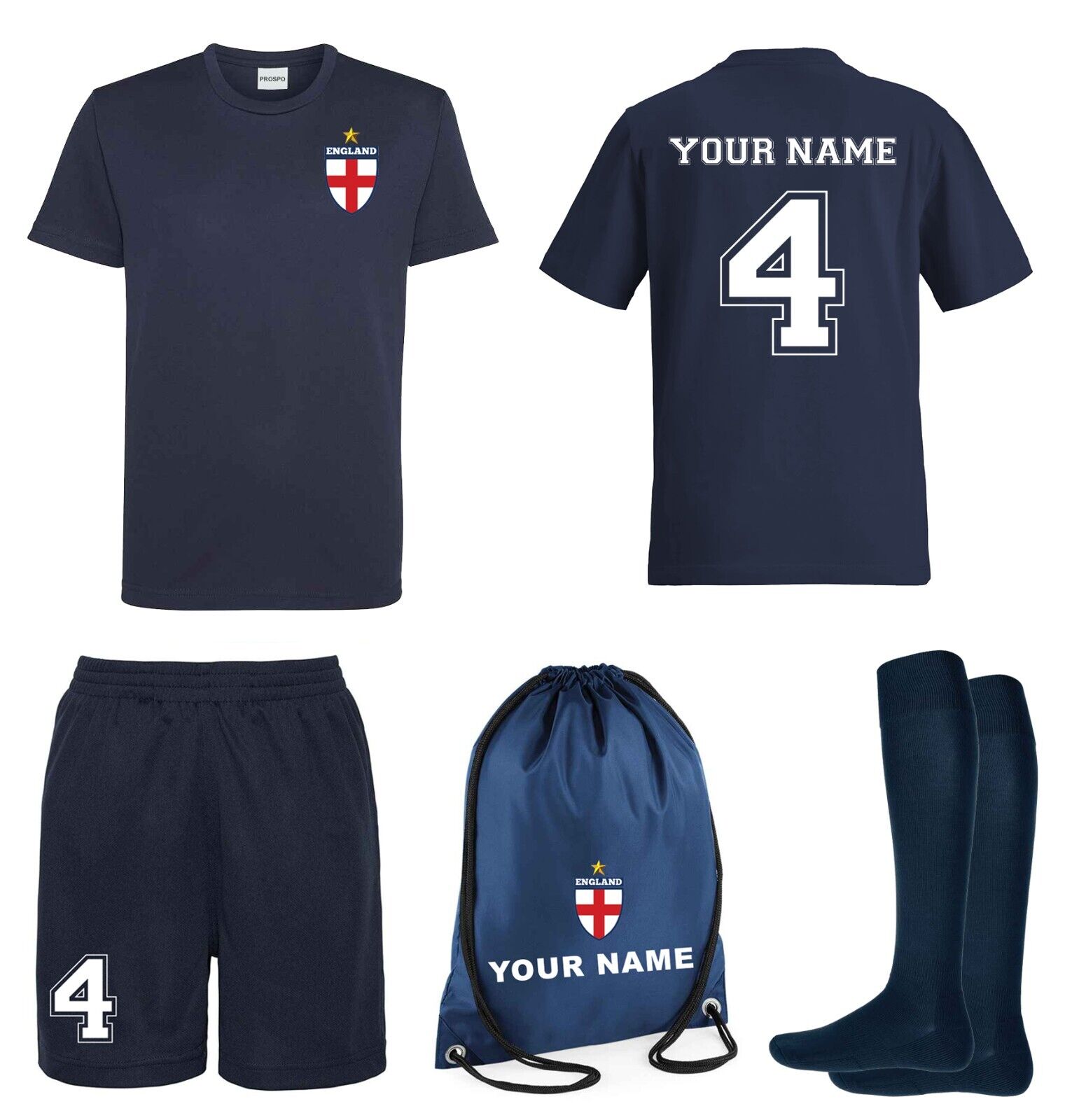 Kids Personalised Navy Blue England Style Away Football Kit Customised Jersey