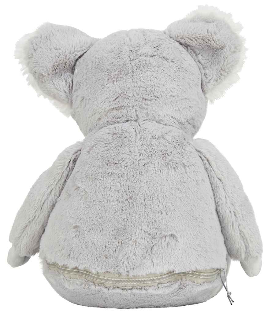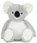 Soft plush grey koala bear. Sewn eyes. Contrast nose. White coloured panel on tummy and feet. Removable...