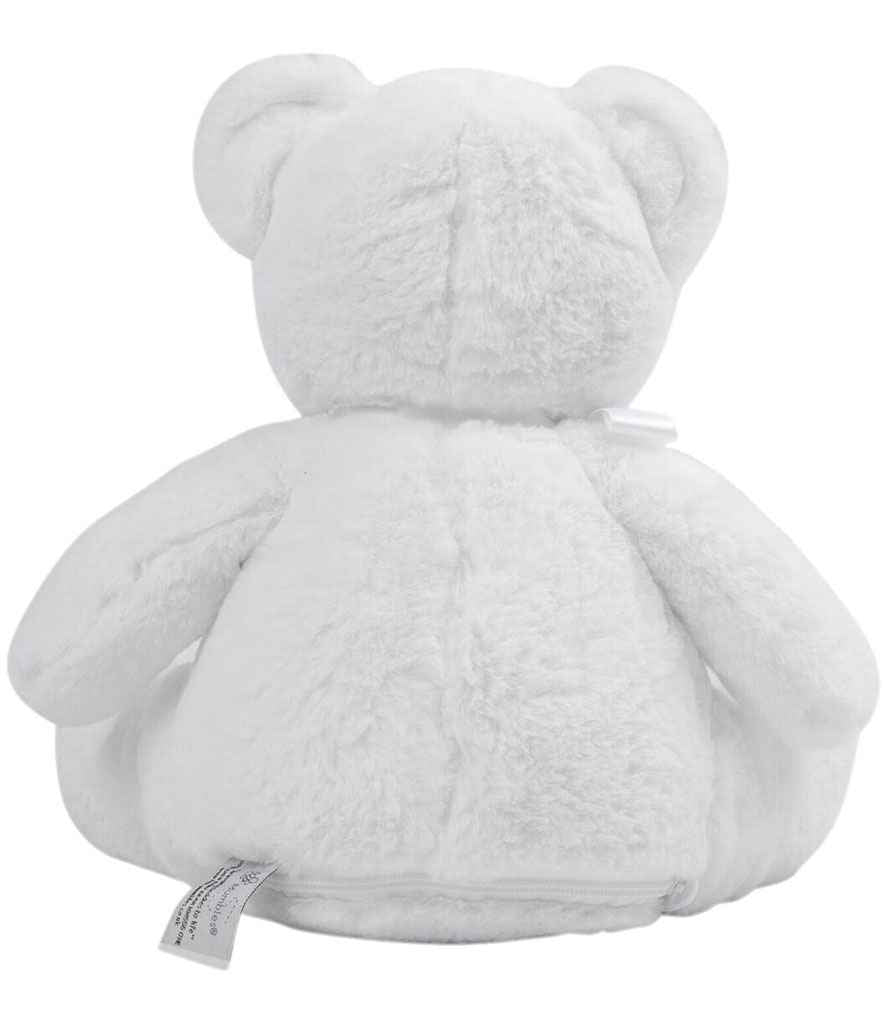 Coloured soft plush bear. White coloured panel on ears, nose, tummy and feet. Self colour ribbon. Removable...