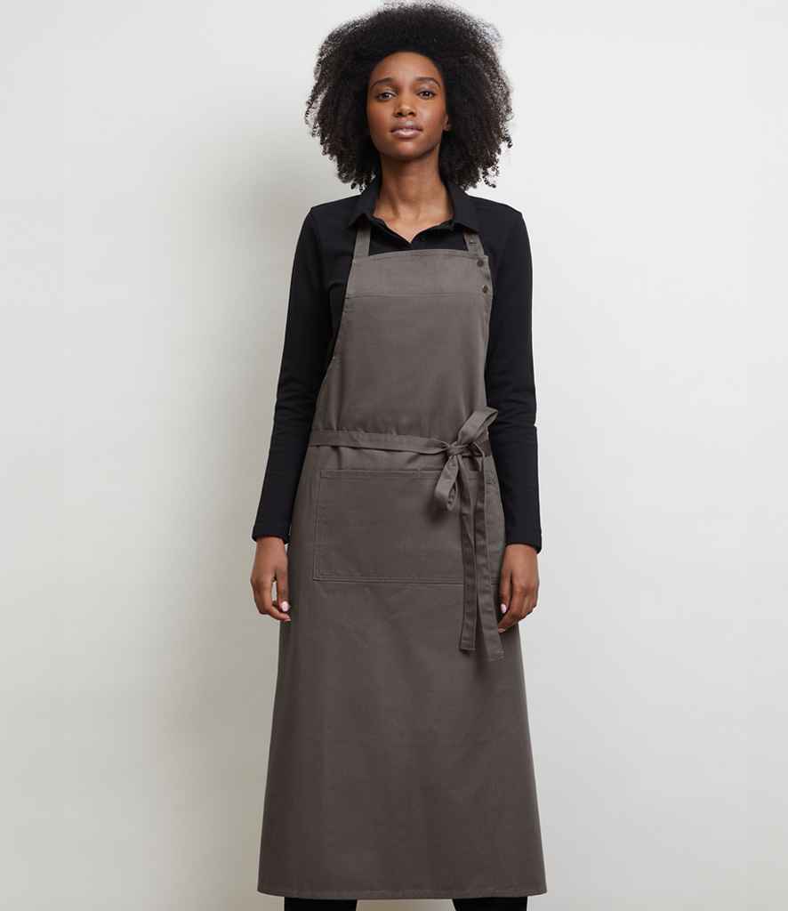 Easy care fabric. Adjustable self fabric neckband with press studs. Large front pocket with two compartments and...