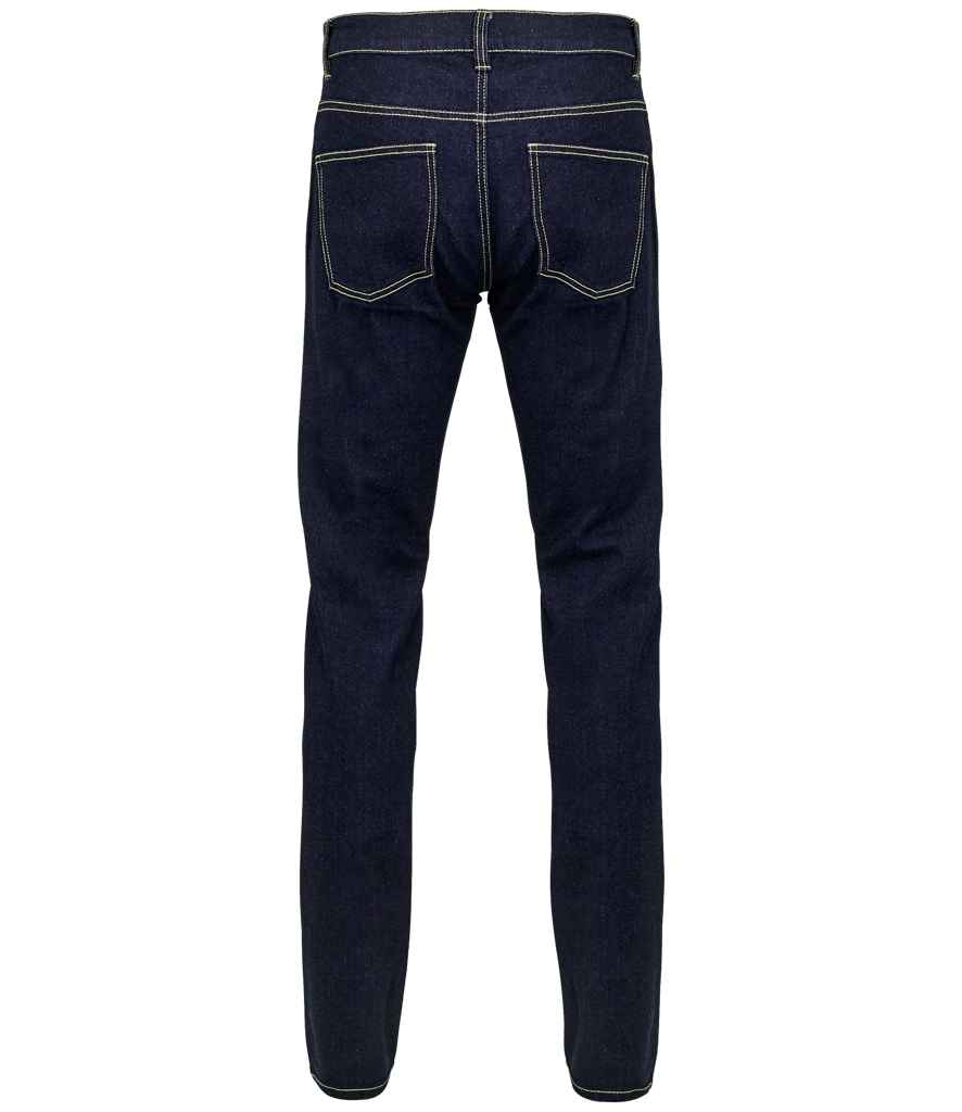 Straight fit. Belt loops. Zip fly with button over. Matt metal buttons and rivets. Five pocket styling....