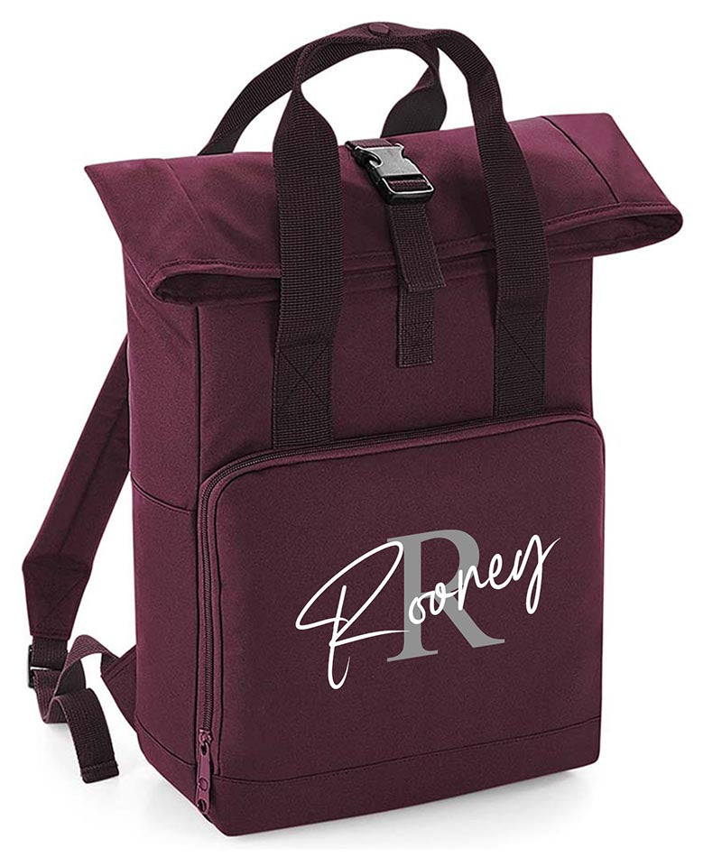 Personalised Backpack with Your Initial Name Twin Handle Roll-Top Backpack