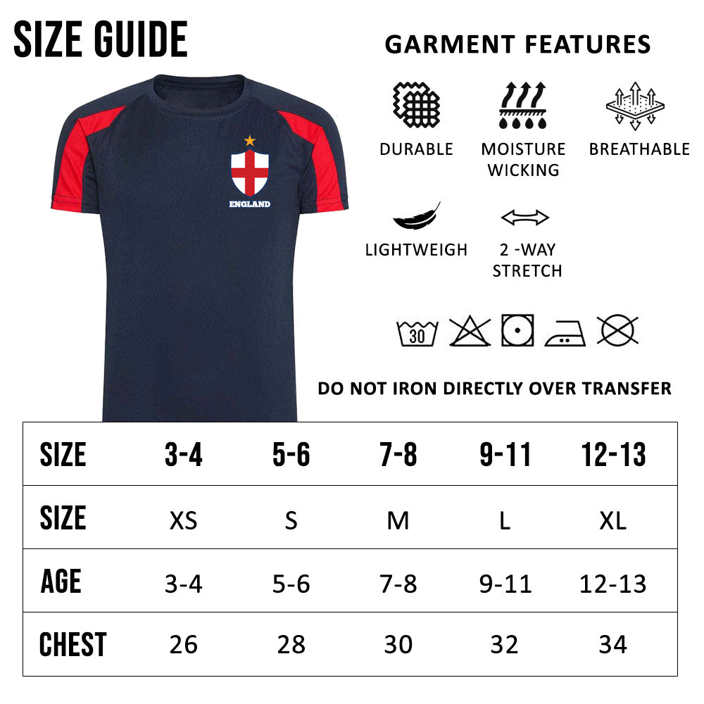 Exclusive England badge to the chest. Made of quality performance sports wicking fabric with high quality printing that will last and last.