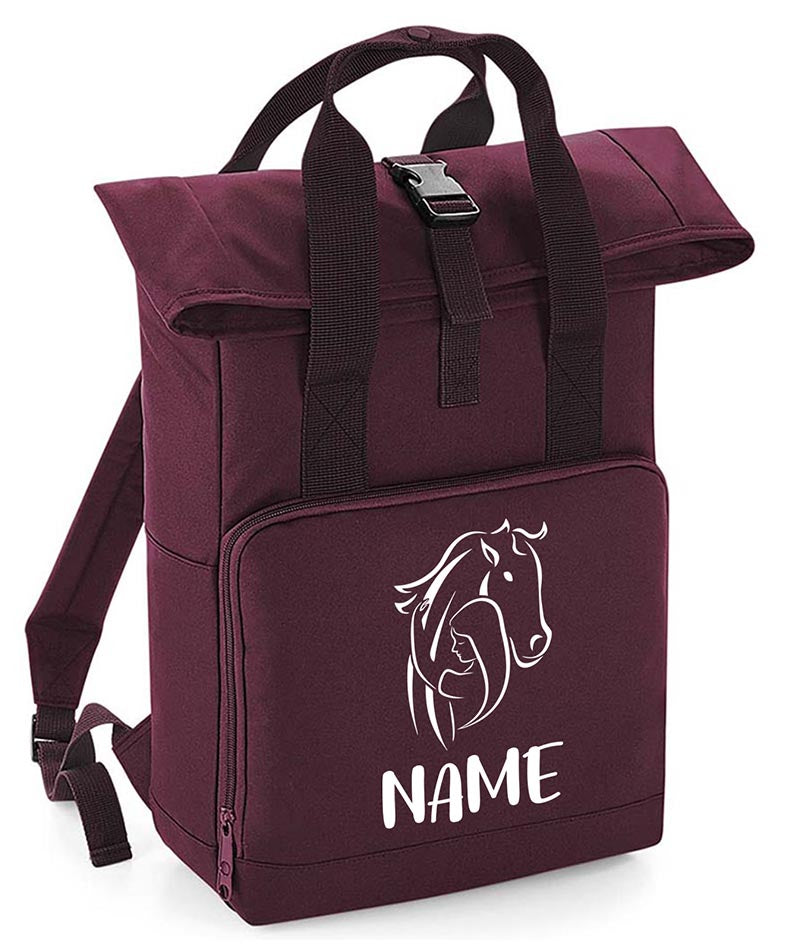 Personalised Equestrian Backpack with Your Name Twin Handle Roll-Top Backpack