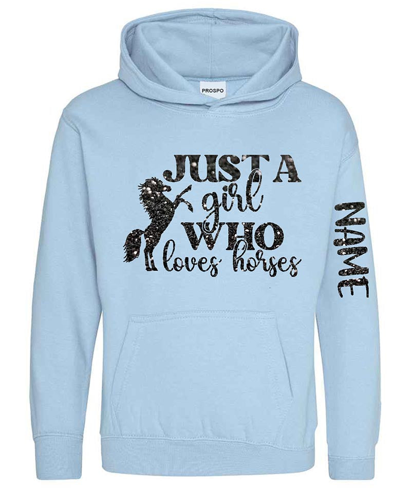 Personalised Equestrian Glitter Hoodie Custom Printed Name Girls Hoodies Jumper