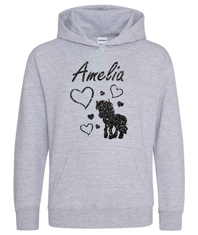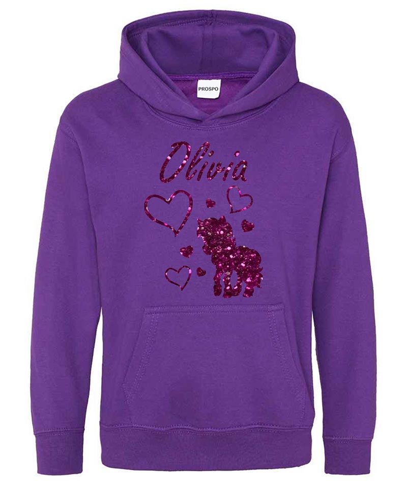 Personalised Unicorn Glitter Hoodie Custom Printed Name Girls Hoodies Jumper
