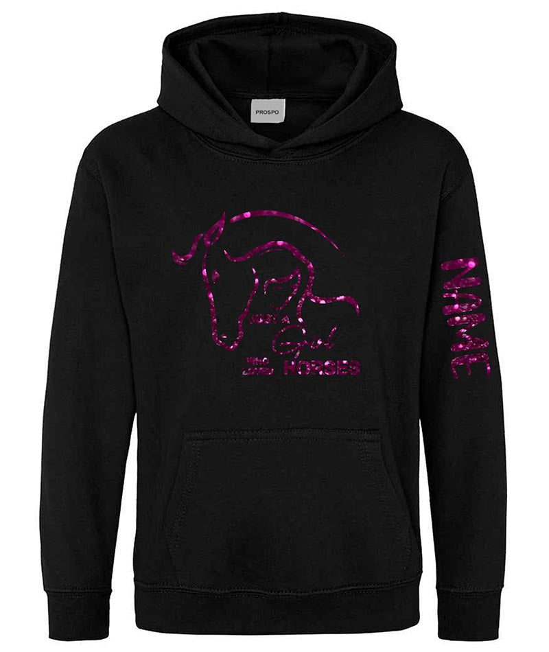 Personalised Equestrian Glitter Hoodie Custom Printed Name Girls Hoodies Jumper  Key Features: Printed with Glitter Equestrian Horse...