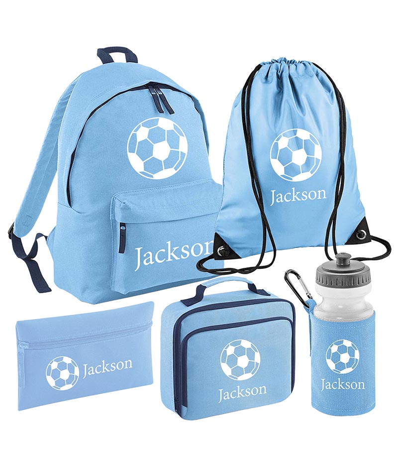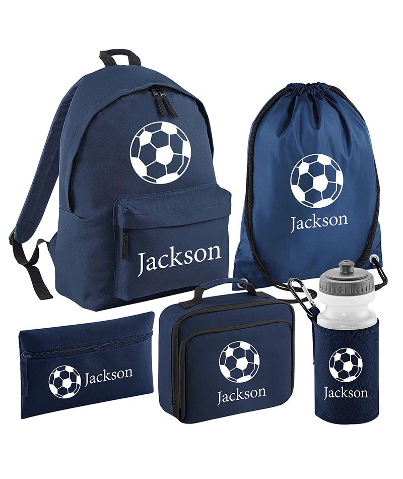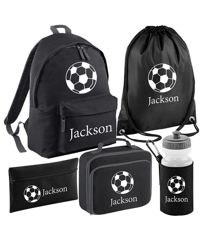 Personalised Football Backpack, Lunch Bag, Drawstring, Water bottle and Pencil Case PE Bag Kids Boys Girls