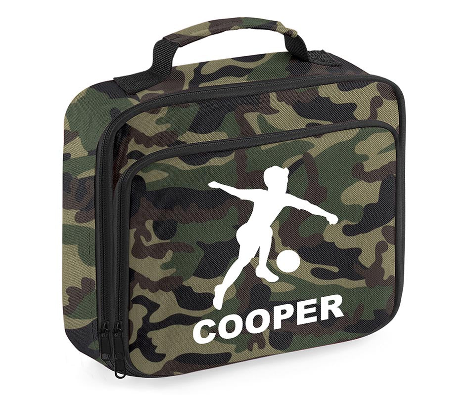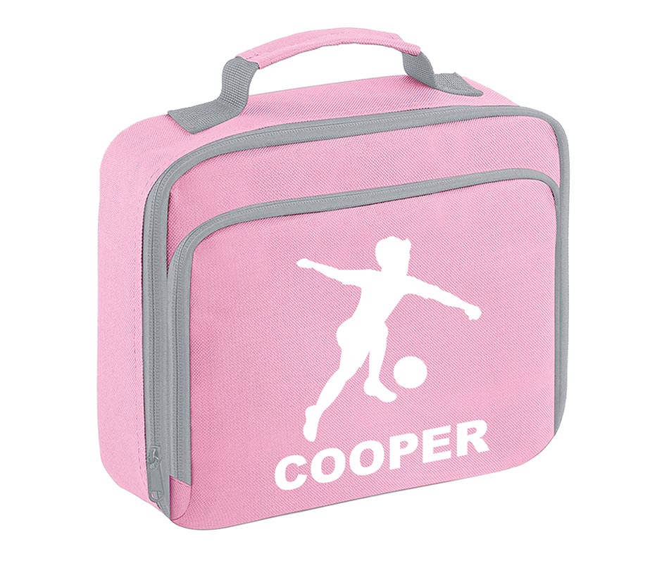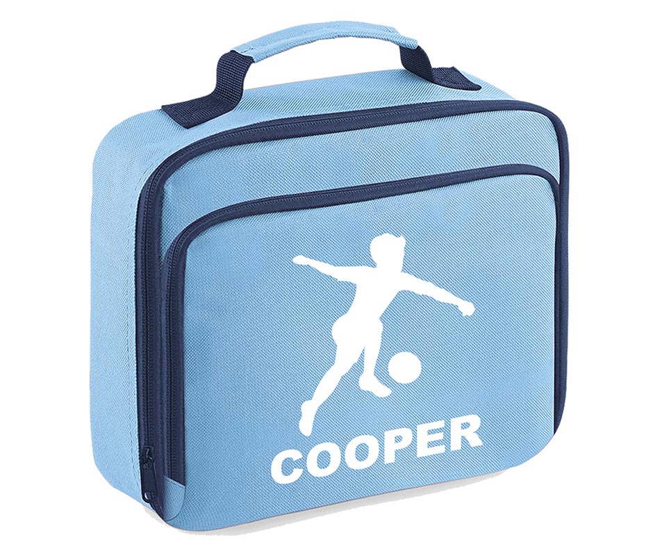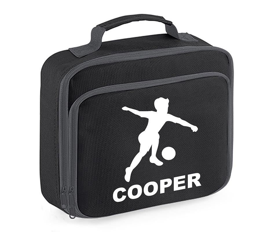 Personalised Football Player Lunch Bag Boys School Insulated Any Name Kids Snack Box