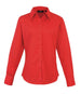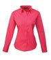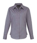 Easy care fabric. Fitted style with bust and back darts. Soft collar styling. Light blue and white...