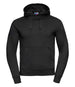 Cotton faced fabric. Brushed back fleece. Drop shoulder style. Double fabric hood with topstitch detail. Flat lace...
