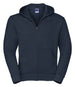 Cotton faced fabric. Brushed back fleece. Drop shoulder style. Double fabric hood with topstitch detail. Flat lace...