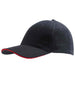 6 panel. Six ventilation eyelets. Contrast sandwich peak on certain colours. Size adjuster with metal buckle.