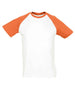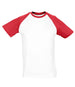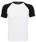 Contrast ribbed collar. Contrast raglan sleeves. Taped neck. Tubular body. Twin needle sleeves and hem.