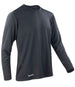 Quick dry performance fabric. Self fabric bound collar. Taped neck. Twin needle sleeves and hem. Printed back...