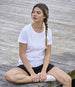 Ribbed collar with elastane. Taped neck and shoulders. Side seams. Twin needle sleeves and hem. 60 C...