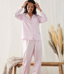 Shirt with notched collar. Self colour pearlised plastic buttons. Contrast piping around collar and centre front opening....